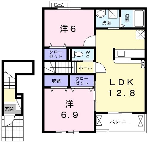 | 2DK 42.93m2 ( 12.98坪 ) |